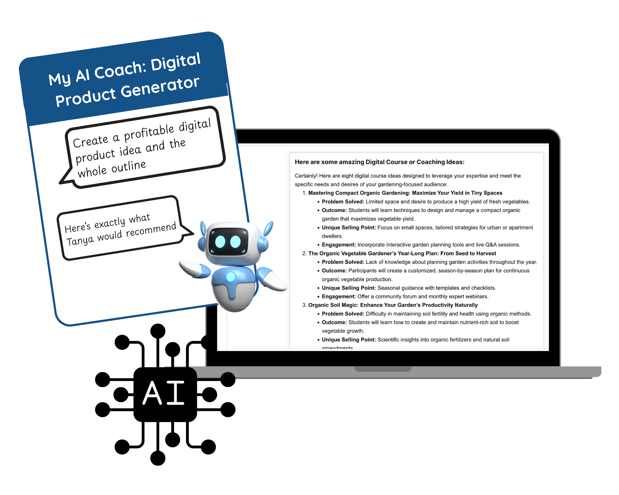 Not all product ideas are profitable. So, my proven framework and preprogrammed AI Coach is going to guide you to your most profitable idea, even if you’re starting from scratch or you're totally unsure..